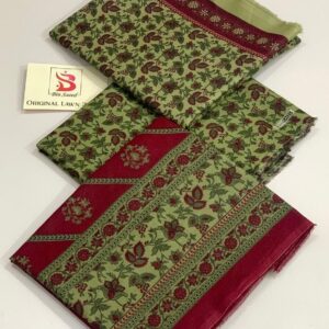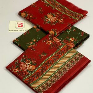 Fabric Lawn – Bin Saeed – Printed 3pc Collection – Color- Dark Red