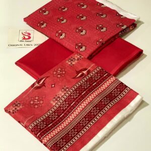 Fabric Lawn – Bin Saeed – Printed 3pc Collection- Color – Maroon