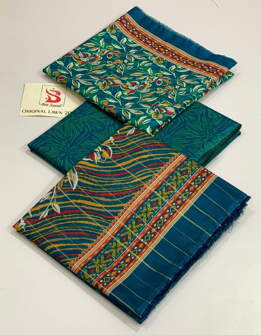 *Bin Saeed 💯 Original *Printed 3pc Collection* *Fabric Lawn* *✨Printed Lawn Shirt* *✨Printed Voil lawn Duppata* *✨Dyed lawn trouser* *Stuff N Colors 💯 *Garenty* *Beautiful Colors Nd* *Designs* *Booked Your Order Now Fast*