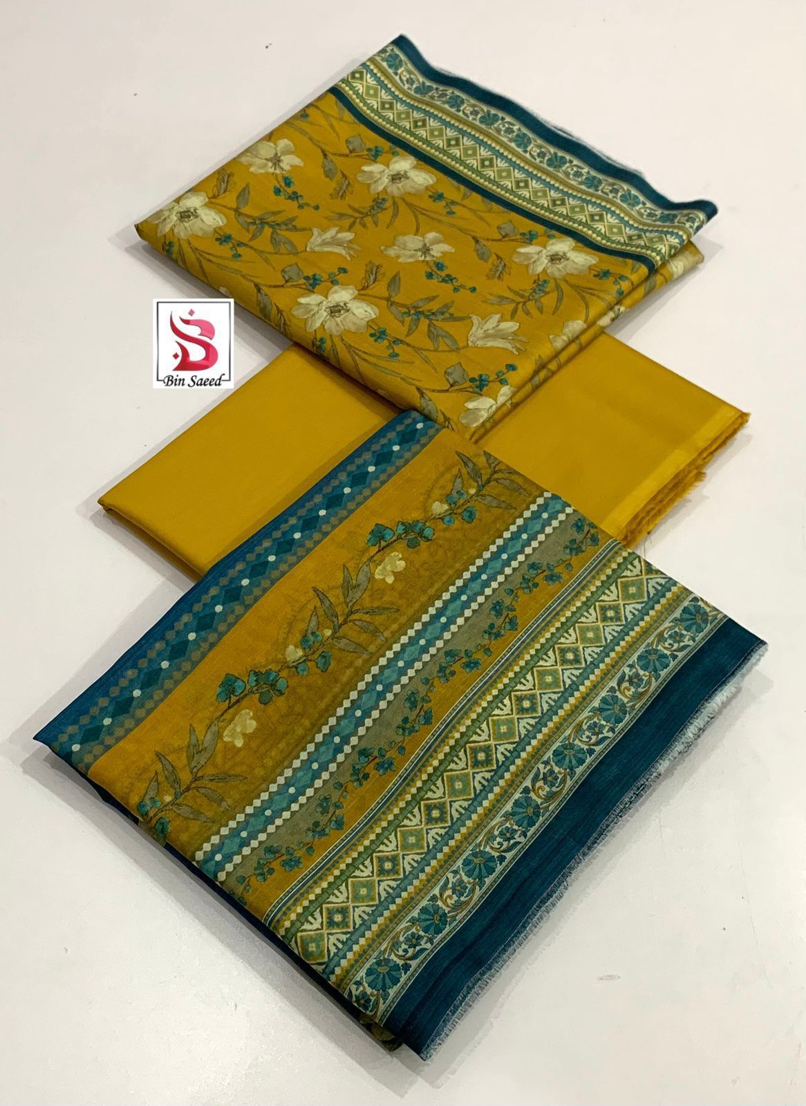 *Bin Saeed Original *Printed 3pc Collection* *Fabric Lawn* *Printed Lawn Shirt* *Printed Voil lawn Duppata* *Dyed lawn trouser* *Stuff N Colors *Garenty* *Beautiful Colors Nd* *Designs* *Booked Your Order Now Fast*