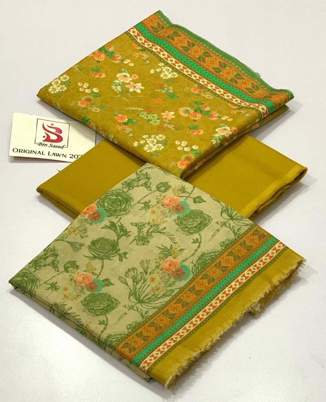 *Bin Saeed 💯 Original *Printed 3pc Collection* *Fabric Lawn* *✨Printed Lawn Shirt* *✨Printed Voil lawn Duppata* *✨Dyed lawn trouser* *Stuff N Colors 💯 *Garenty* *Beautiful Colors Nd* *Designs* *Booked Your Order Now Fast*