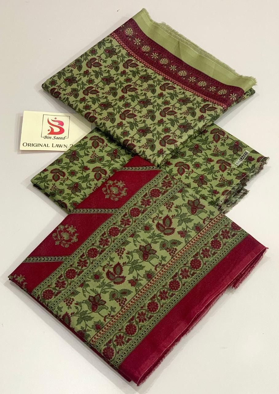 *Bin Saeed 💯 Original *Printed 3pc Collection* *Fabric Lawn* *✨Printed Lawn Shirt* *✨Printed Voil lawn Duppata* *✨Dyed lawn trouser* *Stuff N Colors 💯 *Garenty* *Beautiful Colors Nd* *Designs* *Booked Your Order Now Fast*