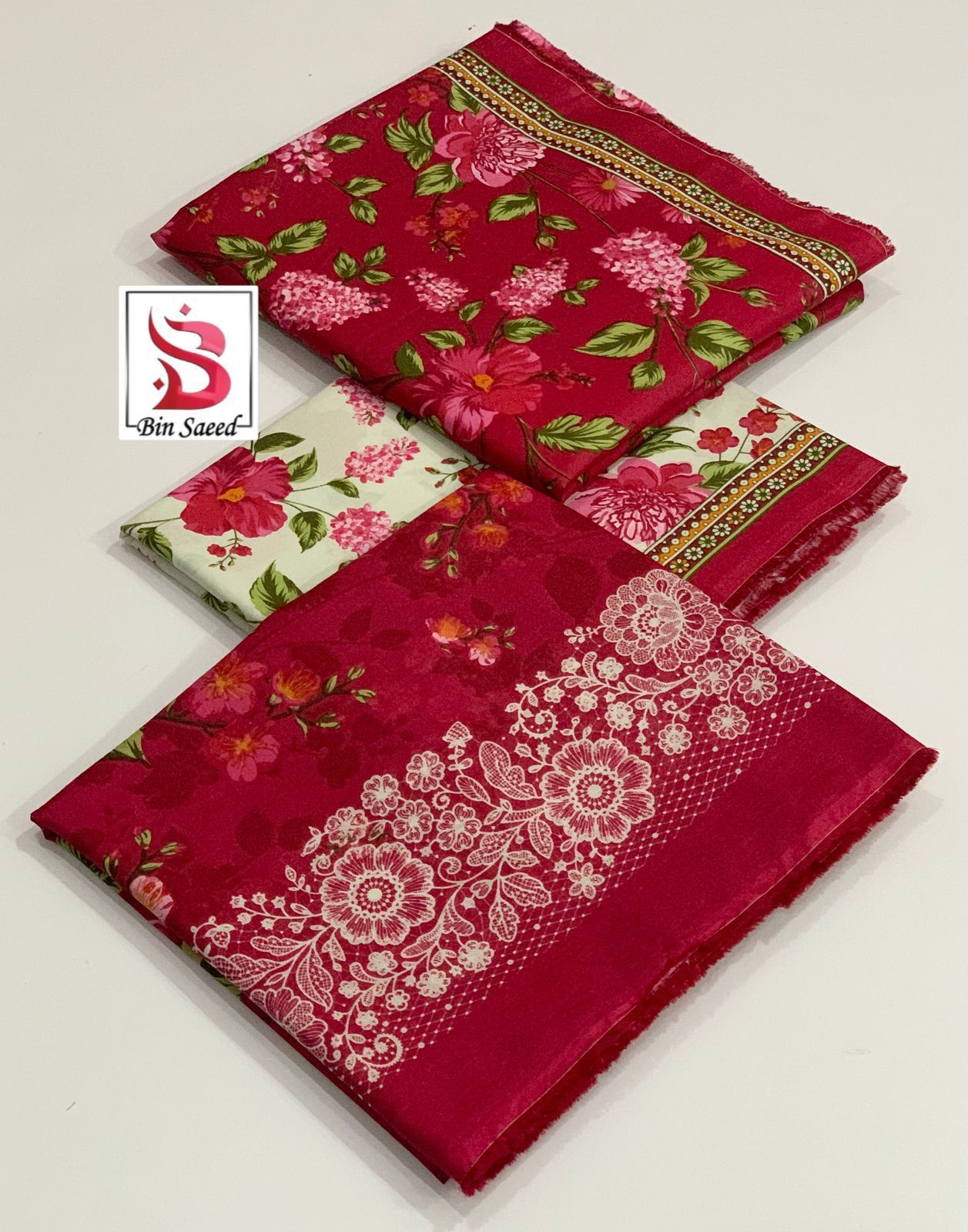 Fabric Lawn – Bin Saeed – Printed 3pc Collection – Color- Maroon