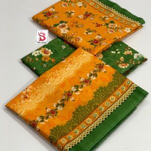 Fabric Lawn – Bin Saeed – Printed 3pc Collection- Color – Green&Orange