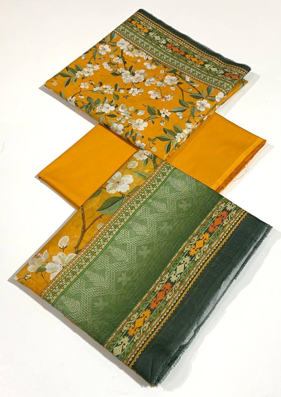 Fabric Lawn – Bin Saeed – Printed 3pc Collection- Color – Mustard Yellow