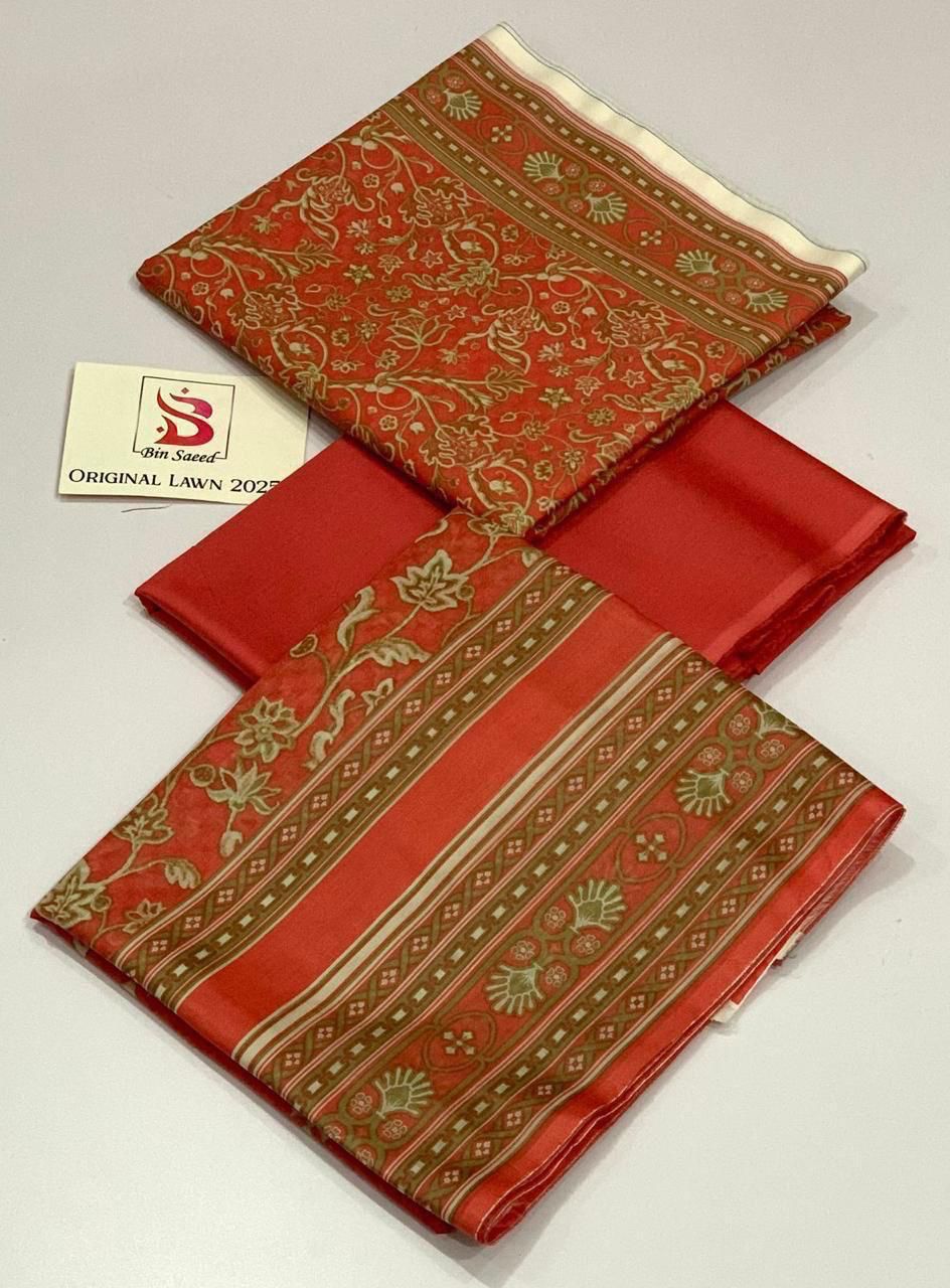 Fabric Lawn – Bin Saeed – Printed 3pc Collection – Color- Red