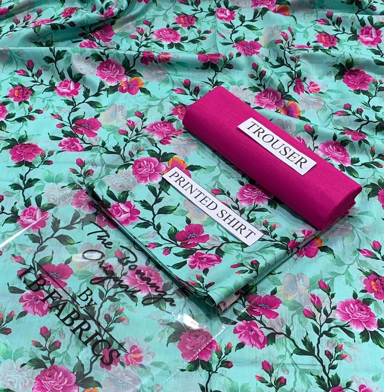 Fabric Lawn – Bin Saeed – Printed 3pc Collection- Color – Green&Orange