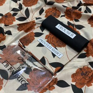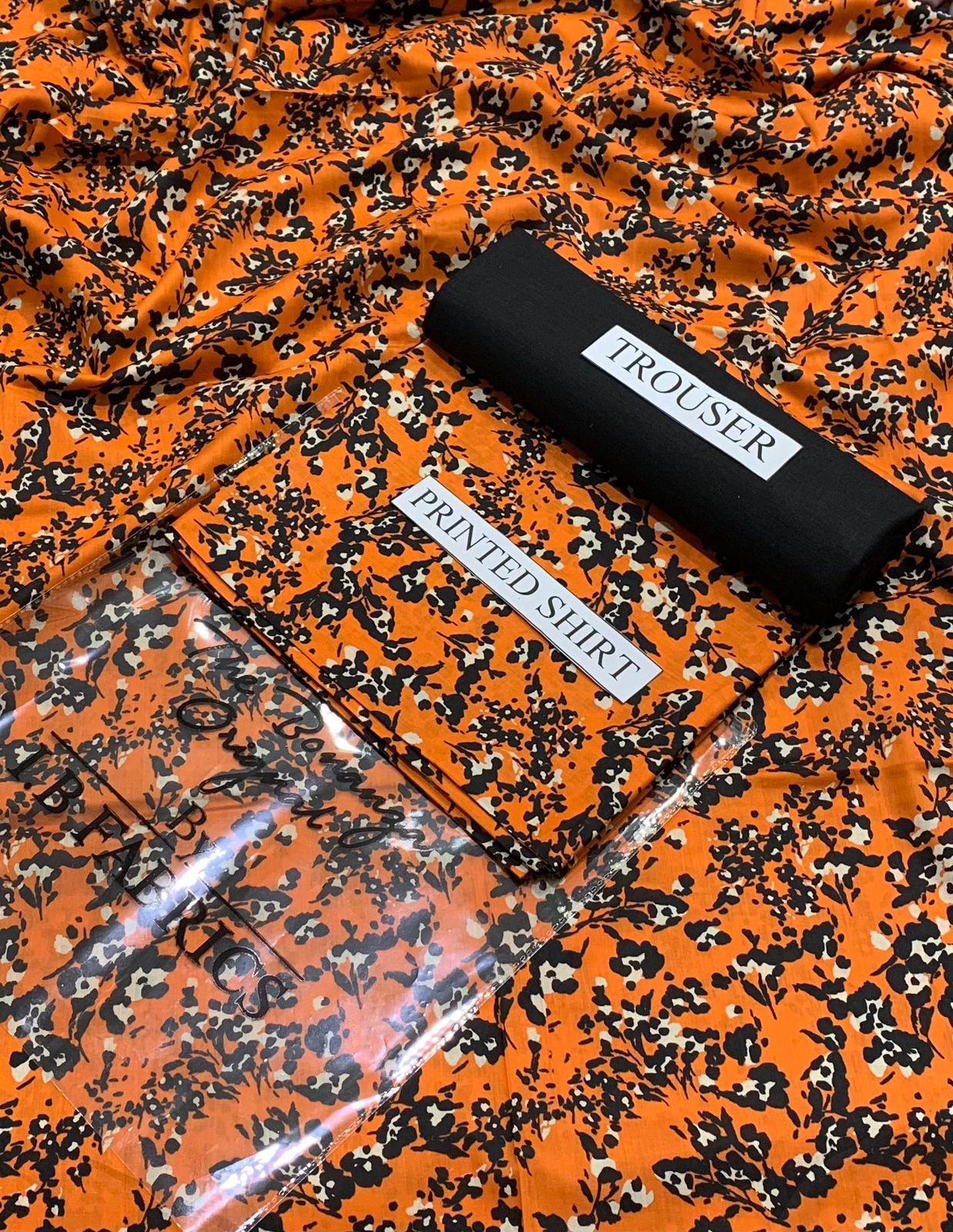 Fabric Lawn – Bin Saeed – Printed 3pc Collection- Color – Orange & Black