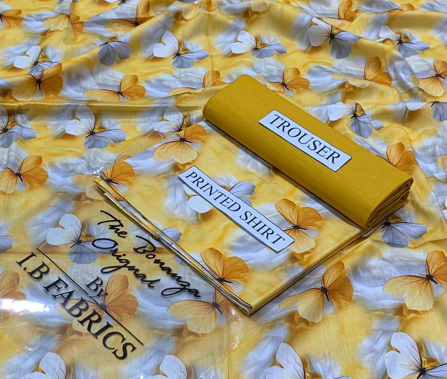 Fabric Lawn – Bin Saeed – Printed 3pc Collection- Color – Mustard Yellow