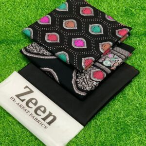 Fabric Lawn – Bin Saeed – Printed 3pc Collection- Color – black